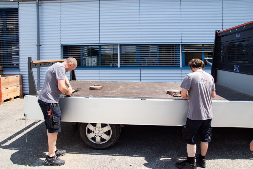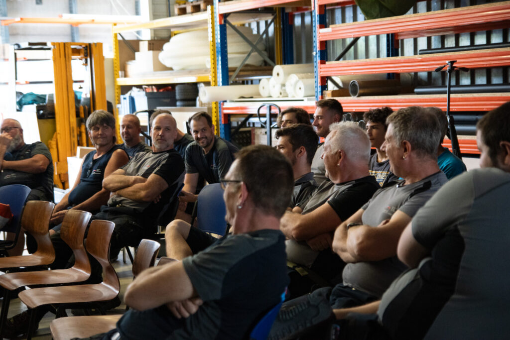 Auch Wissen fürs Tagesgeschäft kam nicht zu kurz: Die richtige Ladungs-Sicherung auf Lieferwagen oder im Sprinter schont nicht nur das Material, sondern rettet im Zweifel auch Leben. Denn schon 100 Kilogramm können bei gar nicht so hohen Geschwindigkeiten zu einer tonnenschweren Gefahr mit tödlicher Durchschlagskraft ins Führerhaus werden. Hier gab der Chef, Inhaber und Geschäftsführer Olivier Jeker, höchst persönlich eine ausführliche theoretische Einweisung, bevor das auch ganz praktisch gezeigt, umgesetzt und miteinander diskutiert wurde.