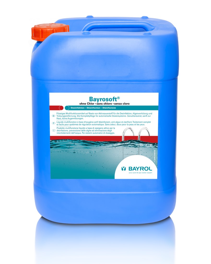 Aktivsauerstoffmethode, kombiniertes Flüssig-Produkt zur chlorfreien Desinfektion und Algenverhütung. Enthält polymere Algizide.
