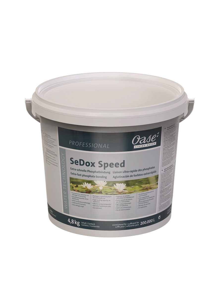 SeDox Speed wandelt Phosphat, den wichtigsten Algennährstoff, in nur wenigen Stunden in im Wasser unlöslichen Mineral Apatit um. SeDox Speed ist die beste Lösung für dringende Fälle, in denen schnelle Abhilfe benötigt wird. SeDox Speed wird in kleinen Säckchen verpackt und um eine bestmögliche Wirkung zu erzielen sind diese in gut durchströmte Regionen, wir z.B. in der Nähe einer Filteranlage zu platzieren. Den Algen wird das nährende Phospat entzogen und werden so am übermässigen Wachstum gehindert. SeDox Speed ist je nach Phosphatgehalt bis zu 6 Wochen lang wirksam. Der entstandene Apatit ist unschädlich für Fische und andere Lebewesen im Wasser und wird als Nährstoff über die Wurzeln von Wasserpflanzen absorbiert. Algen können Apatit nicht als Nährstoff verwenden und „verhungern“.