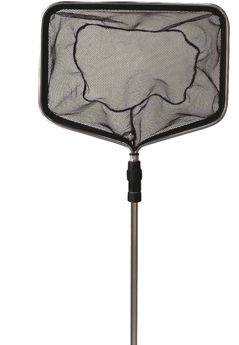 Teichkescher rechteckig aus hochwertigem Aluminium, teleskopierbar von 70-150cm Gesamtlänge.