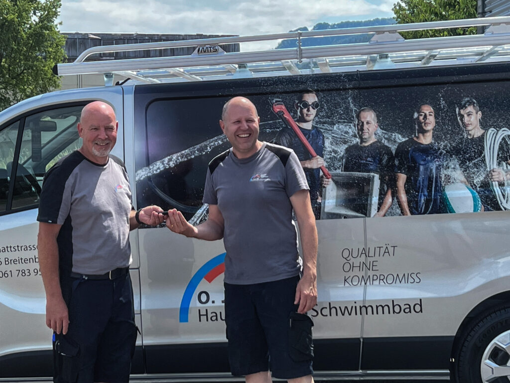 Neben den beiden Bussen für unseren Geschäftsbereich «Schwimmbad», welche vollausgestattet nun für Sie mit unseren Mitarbeitern «Joachim und Claudio» im Einsatz sind, haben wir unsere Flotte um einen leistungsstarken Pickup ergänzt, um unsere Baustellen direkt mit dem benötigten Material sicher und prozessoptimiert zu beliefern.